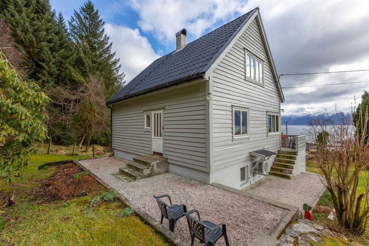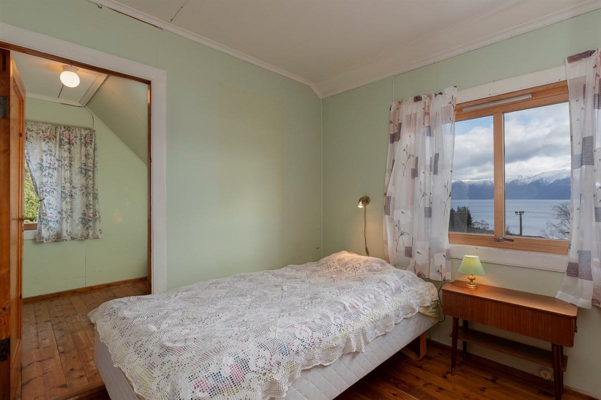 Adkomst: Eiendommen ligger like ved E39 som passerer sør for tomten. Fra hovedveien er det gruslagt privat vei ca. 50meter opp til boligen. Det vil være skiltet med Fjordane Eigedomsmekling sine skilter ved fellesvisning. Fra Bergen er det ca. 2 timer kjøretid, og fra Førde ca. 45min.