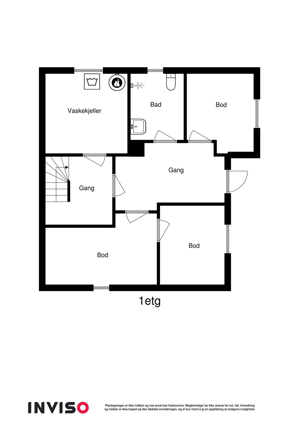 Innhold: Trappegang, gang, vaskerom, bad og 3 boder.