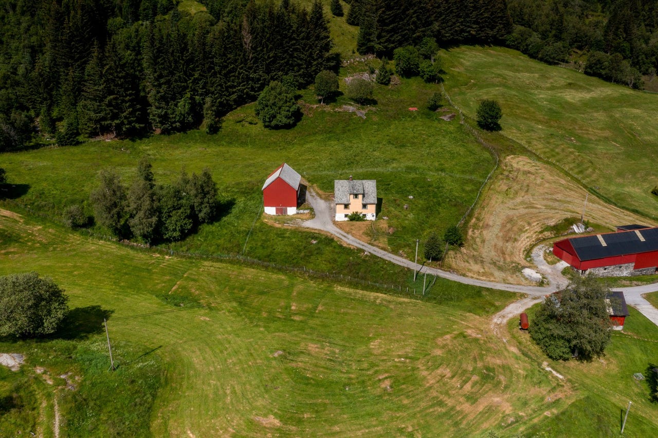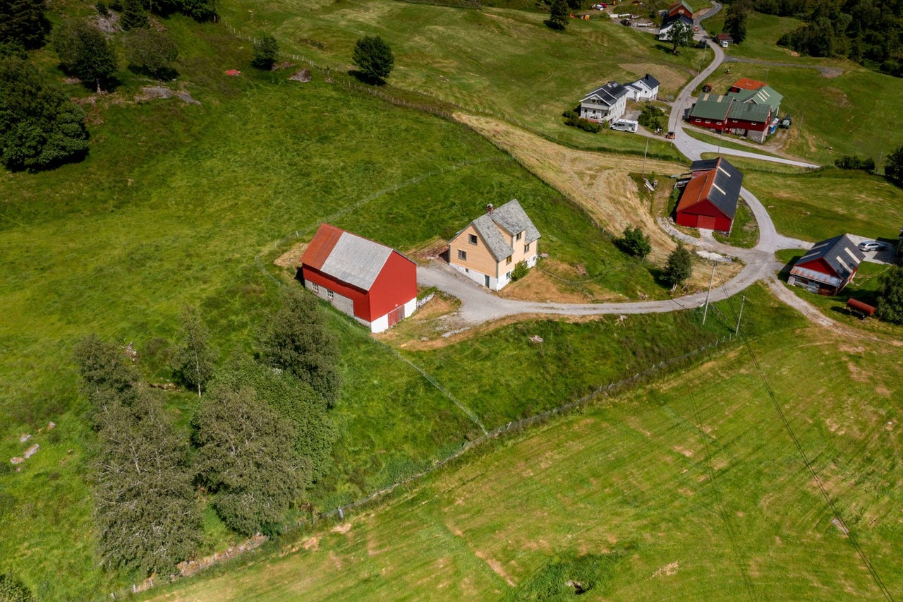 Eiendommen ligger fint til på et høydedrag ca. 300moh. innerst i Avedalen i Høyanger kommune. Dette er et rolig og landlig område med lite gjennomgangstrafikk. Fra eiendommen er det fin utsikt over dalføret mot sør og øst. Boligen vender mot sør og har gode solforhold med sol til ca. kl.20.30 på høysommeren.