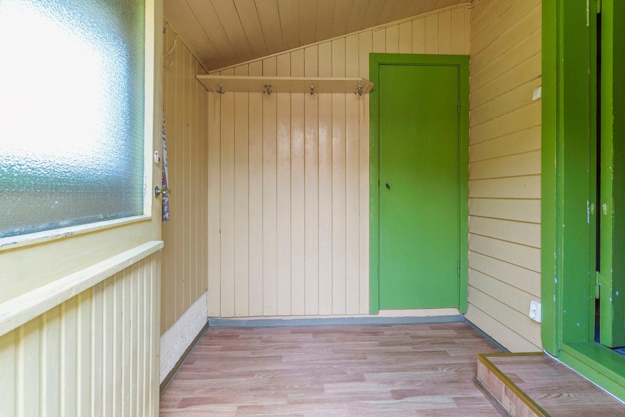 Innhold: Vindfang, gang m/trapperom, stue, kjøkken, 2 soverom og kott.