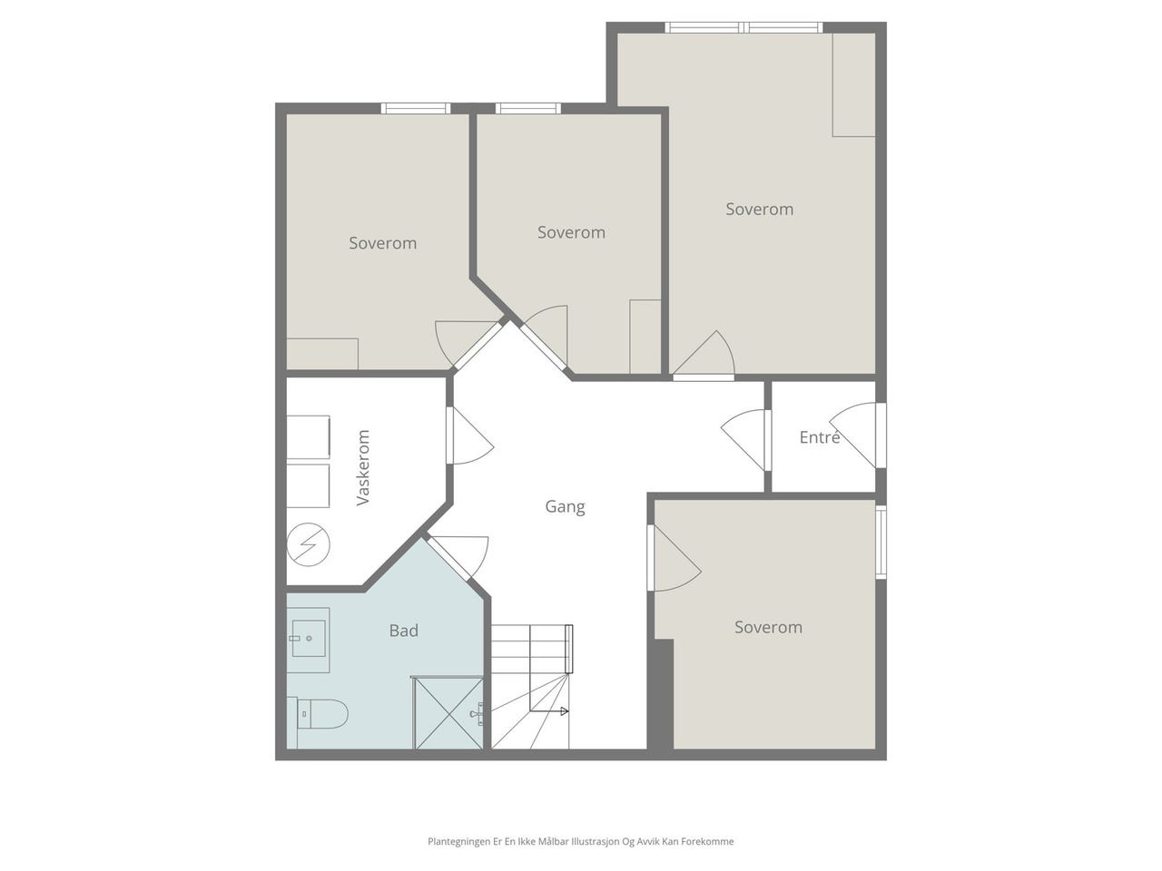 Vedlagte plantegninger er ikke målbare, og oppgitte arealer er hentet fra vedlagte tilstandsrapport.