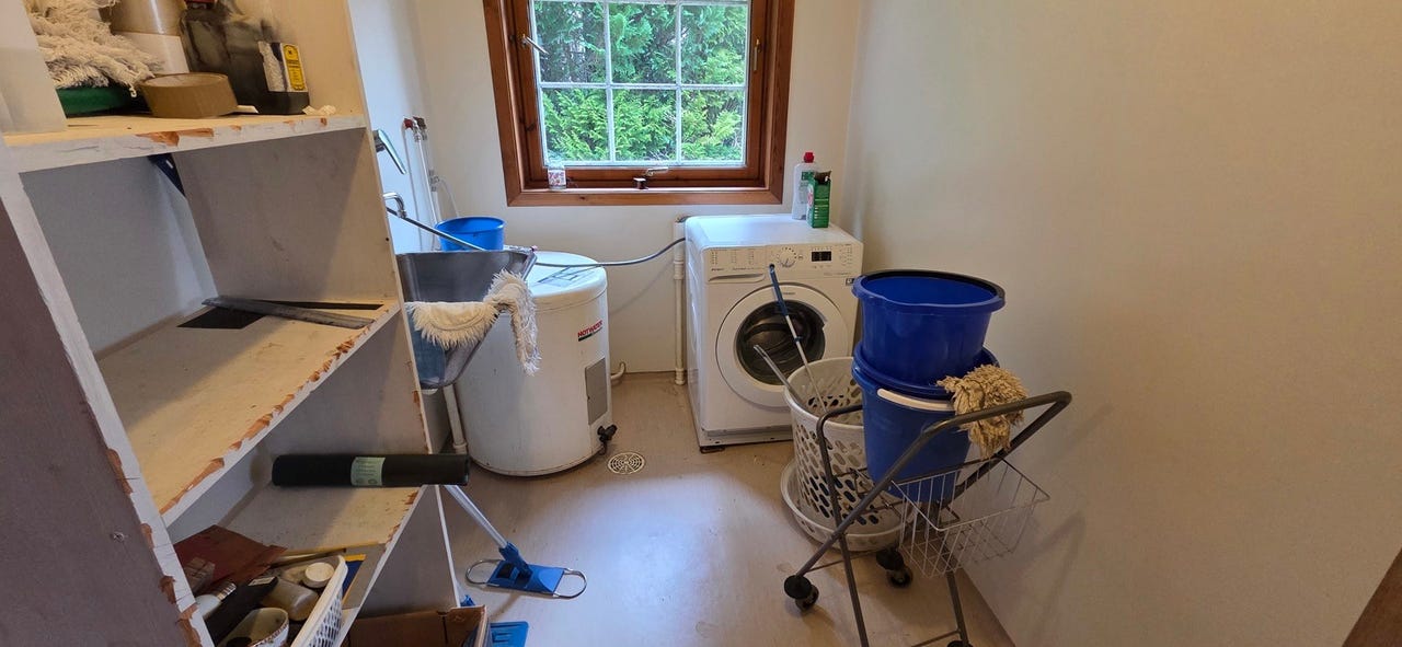 Varmtvannsbereder på 116 liter som er plassert i vaskerommet.